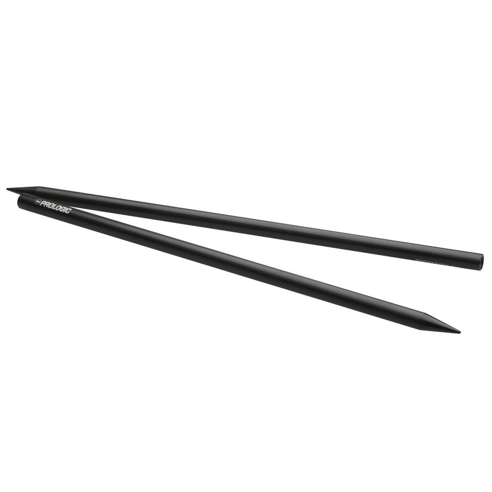 40cm Black anodised solid hard Aluminium with profiled points, the slim diameter sticks will easily penetrate the hardest of terrains allowing you to quickly and efficiently wrap-up with ease. Laser etched Prologic logos and machine contoured threaded heads can accommodate our Hi-Viz bright white flared PTFE heads with isotope slots